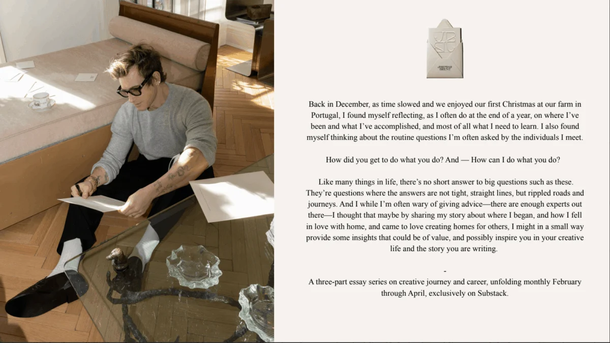 While platforms like Instagram excel as a visual "shop window" for a designer’s aesthetic, Substack provides the space to articulate the "why" and "how" behind creative decisions. Brent posits that Substack complements visual platforms by slowing down the narrative. "Substack has been complementary in that it slows everything down," he says. "It allows for depth where Instagram often prioritizes what’s short and sweet and visual." This distinction is crucial for designers seeking to convey a deeper understanding of their craft and their individual approach.