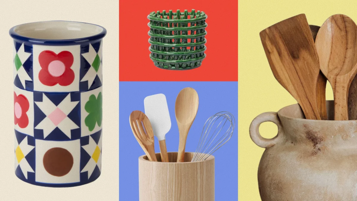 - Ikea Brugdhaj Utensil Holder: A highly accessible option, this holder from Ikea ($13) embodies functional minimalism. Its simple form and neutral beige color make it an unobtrusive yet essential addition to any streamlined kitchen.